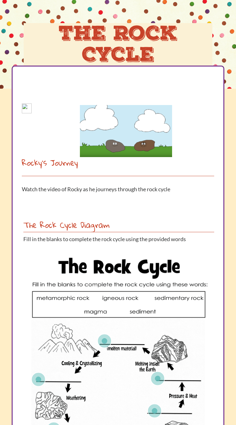 After students have been introduced to the rock cycle, create this fun diagram that reviews how each rock cycle diagram worksheet. The rock cycle explains the cyclic processes in which these kind of.